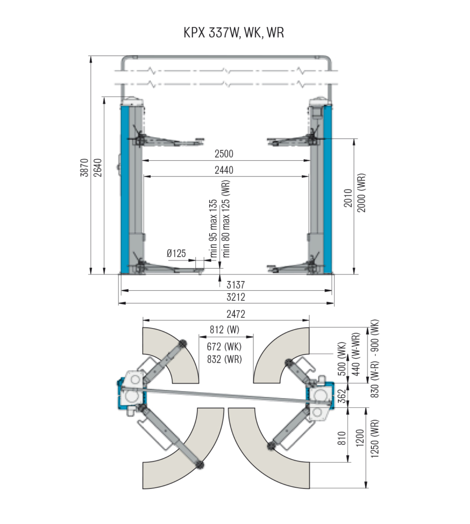 2-pelarlyft 3,5 ton anpassad för elbilar