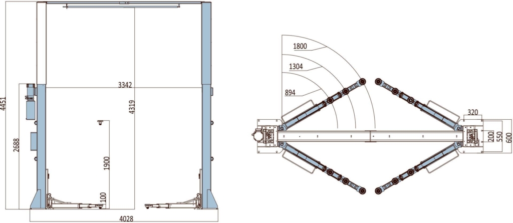 Lyft med hydrauliskt driven, samt elektrisk nedsänkning symmetriska armar.