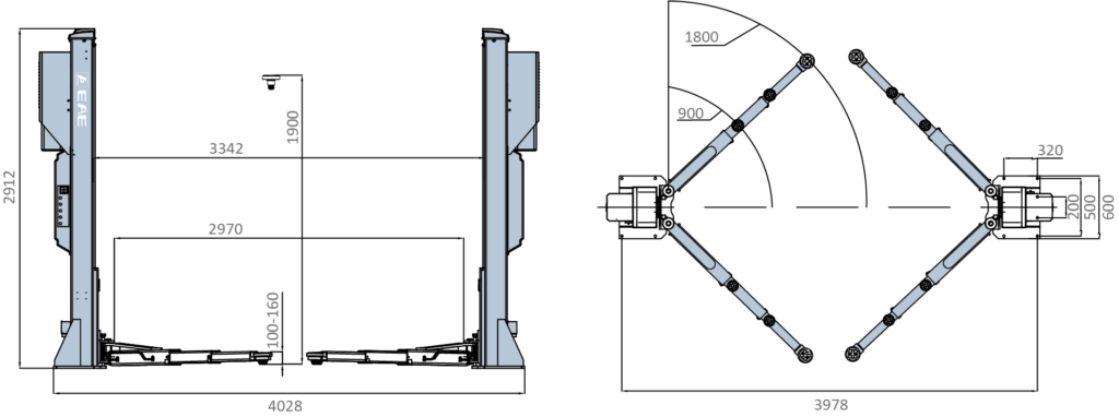 2-pelarlyft från Eae med trådlös förbindelse mellan pelarna. Den har en lyftkapacitet på 5 ton, lyfthöjd på 1900 mm och en bredd mellan pelarna på 3342 mm. Lyften är särskilt lämpad för att lyfta större fordon som, pickups, stadsjeepar, MPV, skåpbilar, små husvagnar, medelstora bussar och lätta lastbilar. Passar perfekt i professionella verksamheter som behöver en kraftfull lyft som klarar många olika typer av fordon.