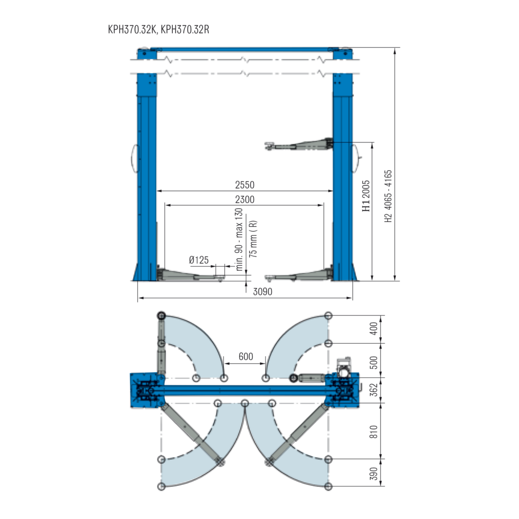 2-pelarlyft 3,5 ton anpassad för elbilar