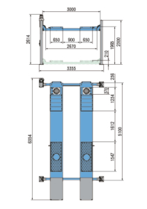 Bredd mellan pelarna: 3000 mm