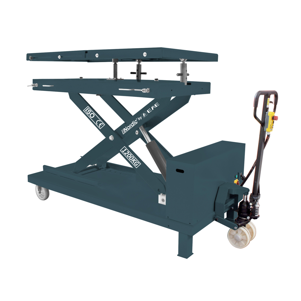 Detta mobila lyftbord är designat för demontering och fixering av batterier i elektriska fordon samt motor, växellåda, drivaxel, bränsletank, upphängning, konsol och chassikomponenter i traditionella fordon.