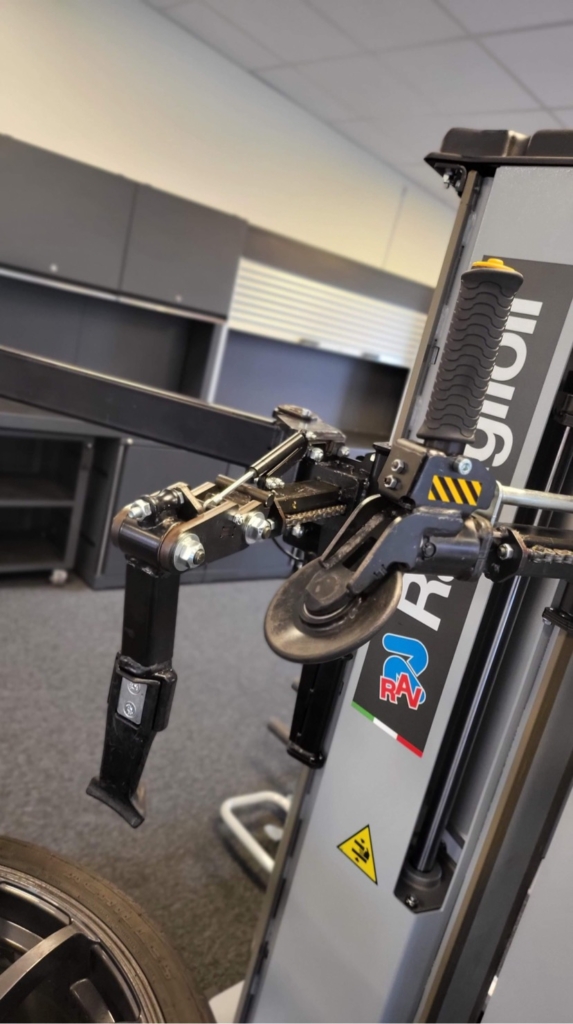 Däckmaskinen är utrustad med ett innovativt verktyg utan hävarm (patenterat) som gör det möjligt att arbeta snabbt och utan ansträngning även på ultralågprofildäck, RUN-FLAT.