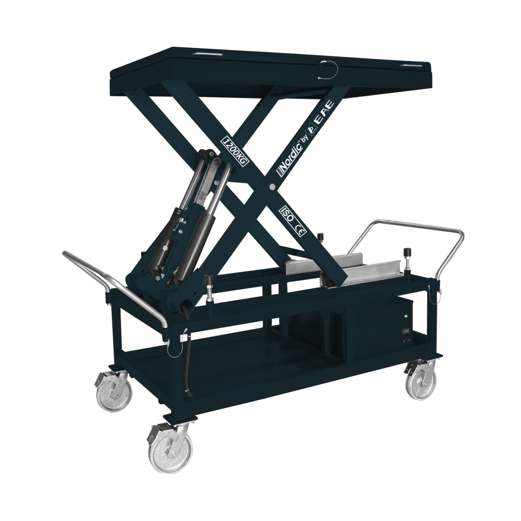 Detta mobila lyftbord är designat för demontering och fixering av batterier i elektriska fordon samt motor, växellåda, drivaxel, bränsletank, upphängning, konsol och chassikomponenter i traditionella fordon.