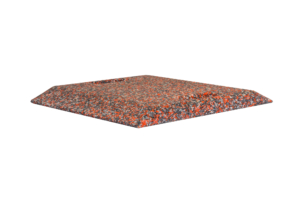 Påkörningsramp av polyuretangranulat med måtten 500 x 500 x 40 mm. Den har en lutning på två sidor så att fordonen säkert kan köra på och av rampen. Två handtag i rampen för att göra den lättare att hantera.. Hela rampen är gjord i återvunnen polyuretan.